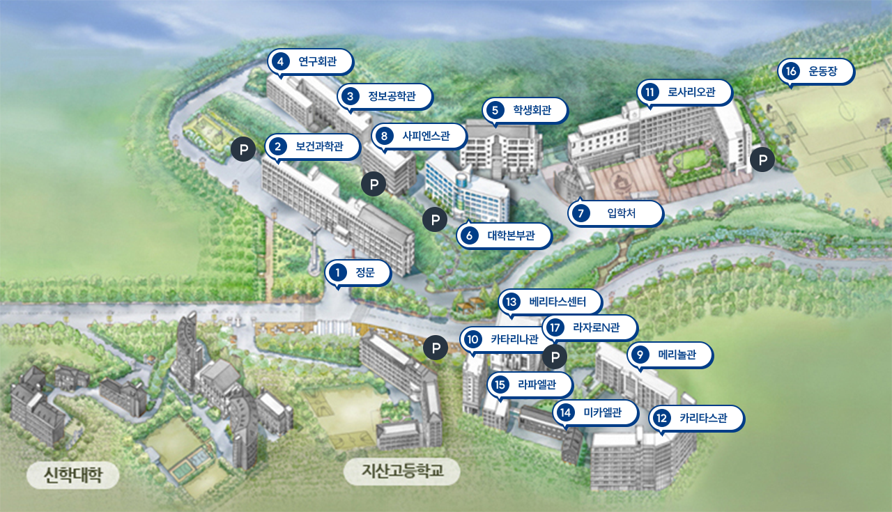 1 정문 Main Gate 2 보건과학관(A) Health Science