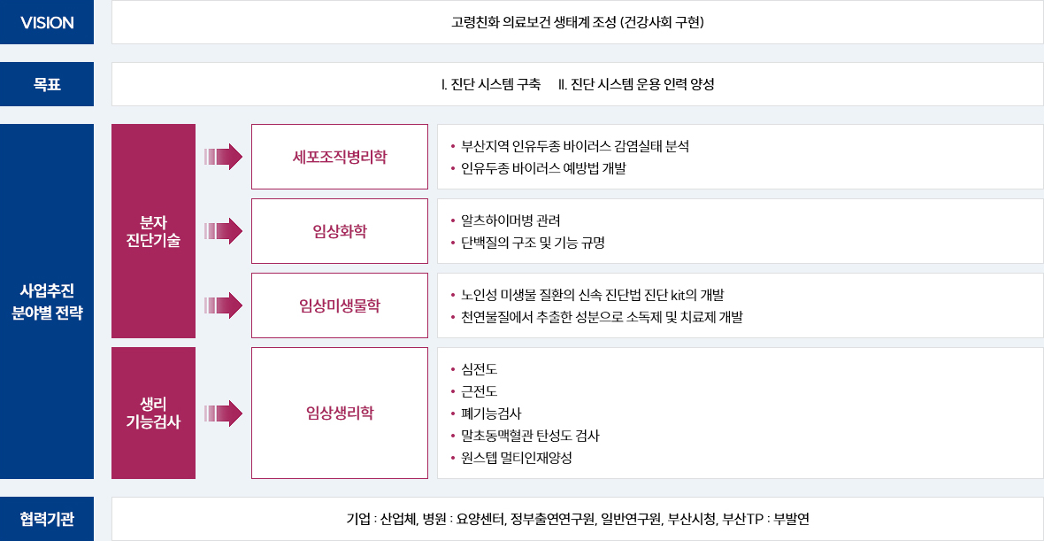사업단 비전 : 고령친화 의료보건 생태계를 조성하여 건강사회 구현